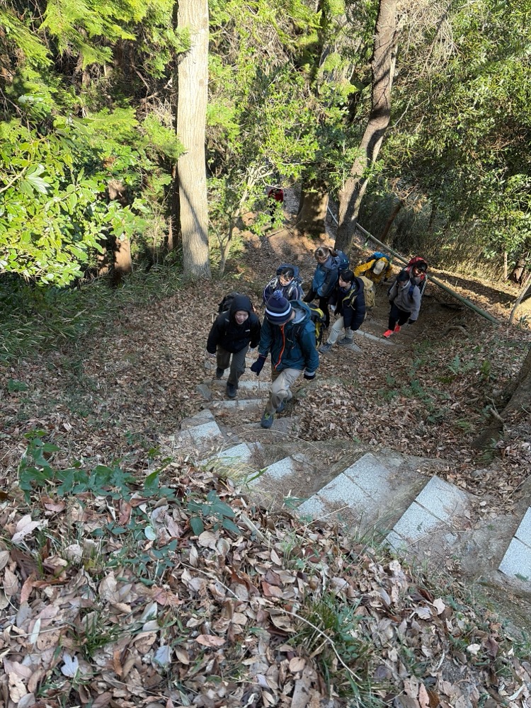 1月11日(日)、新年最初の行事として餅焼き例会を実施し、津田駅から交野山へ登りました。参加者は79期2年生6名、80期1年生3名の計9名でした。