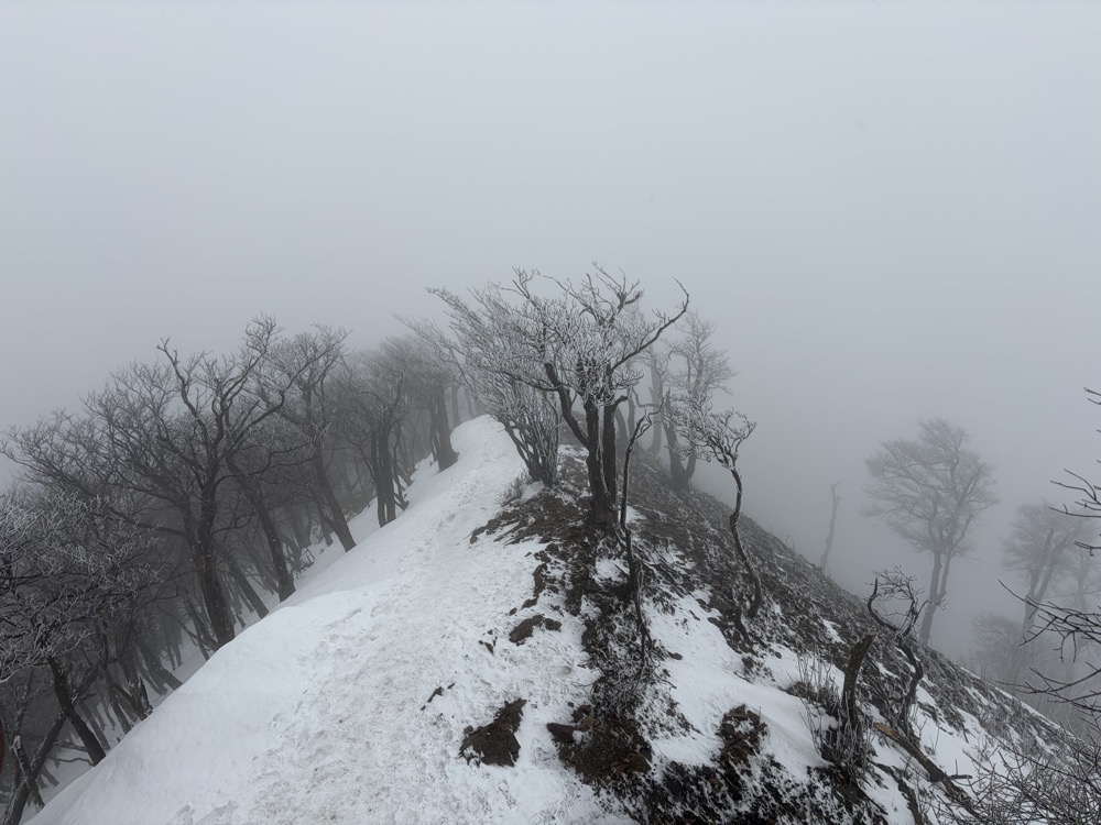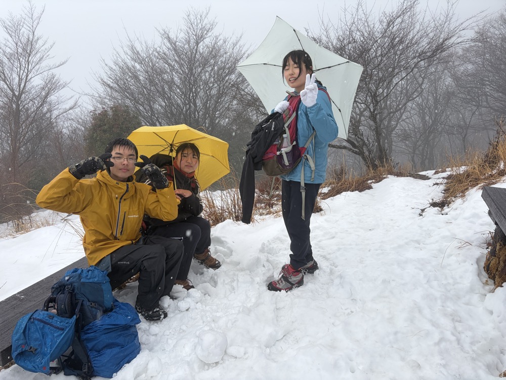 雪が結構多く登りにくく、頂上では風が強く寒かったですが、アイゼンをつけ雪道を登る貴重な体験ができました。