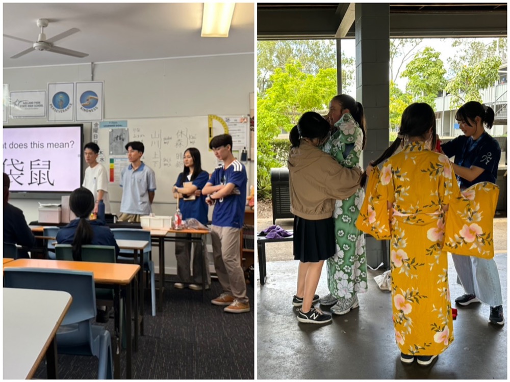 B. Yukata and Happi dressing: I really enjoyed the J-culture lesson! I was in charge of helping the students wear yukata. While helping them, I could talk with them. I was worried about whether Australian students are interested in our lesson. However, they seemed to become more interested in Japanese culture!!