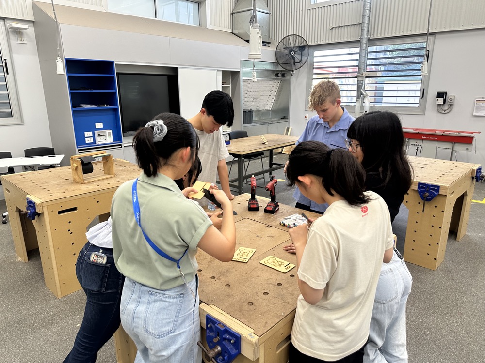 In the fourth period, we had a technology class. We made smartphone stands with koala and kangaroo designs. We used a laser to draw pictures and words on wood. Then, we painted them. It was very fun.