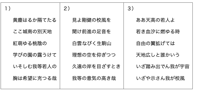 原曲は当時の天中生の公募により校歌として制定され、その後何度かの改作ののち、現在は天高生の応援歌として歌い継がれています。