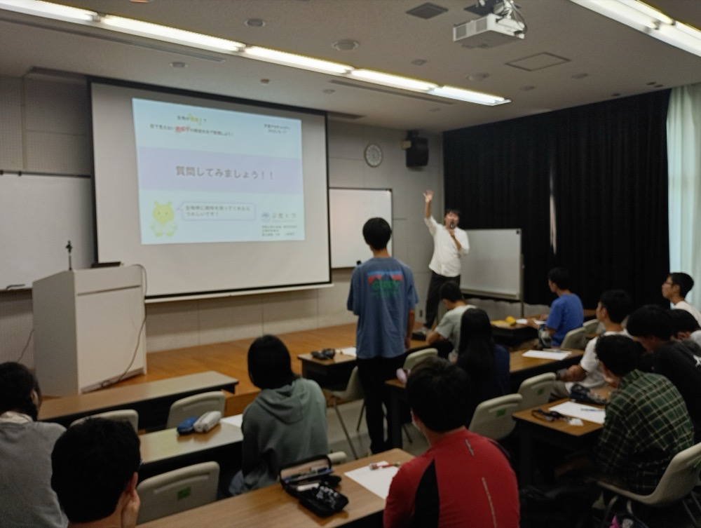 9月17日(水)本校卒業生で時間生物学を研究しておられる上野稜平さんに博士課程におけるキャリア形成とレポーター遺伝子に関連する研究内容をご講義いただきました。