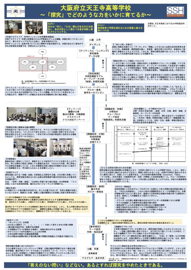 また、毎年2月に天王寺高校主催で「近畿サイエンスデイ」を梅田スカイビルで開催し、SSH8校での課題研究発表会を実施しています。