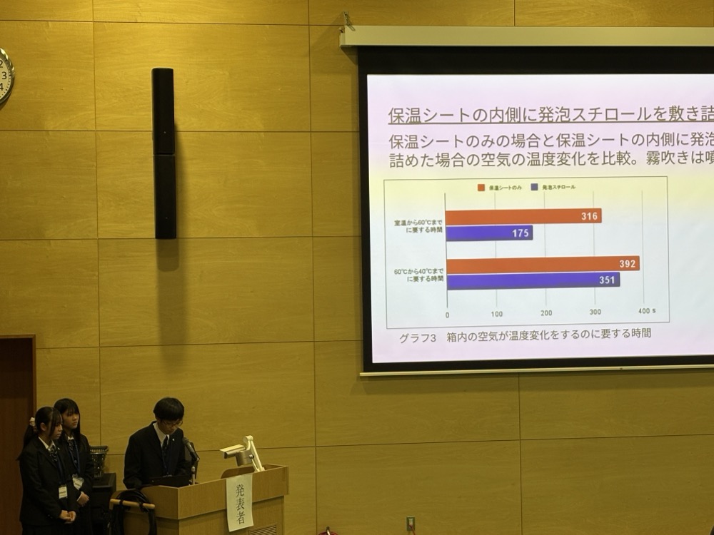 また、質疑応答にも熱意をもって対応し、発表後は大学教授から専門的な指導助言をいただくことができました。