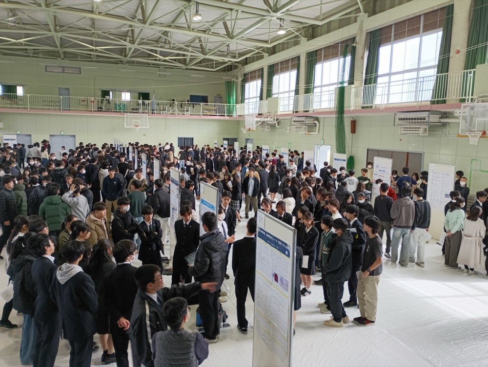物理、化学、生物、地学、数学、情報分野を中心としたSSH課題研究発表会を本校体育館にて実施しました。