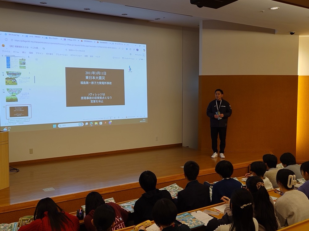 宿泊先のJ-VILLAGEに到着後、「震災から学ぶ」題して、講演を聞きました。