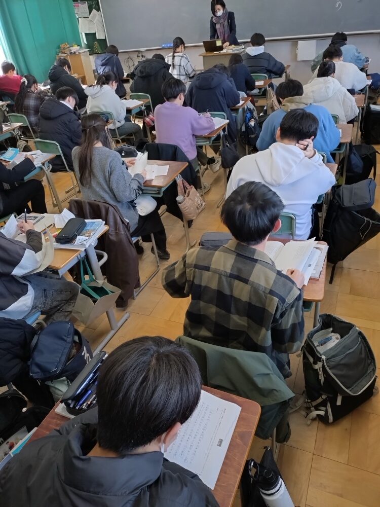 共通テストを11日後に控え、どの教室も空気が張り詰めています。体育の授業で汗をかいても、部活をやってる1・2年生の歓声があがってもなんのその。いつも以上に真剣です。