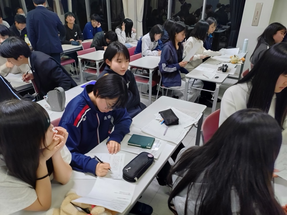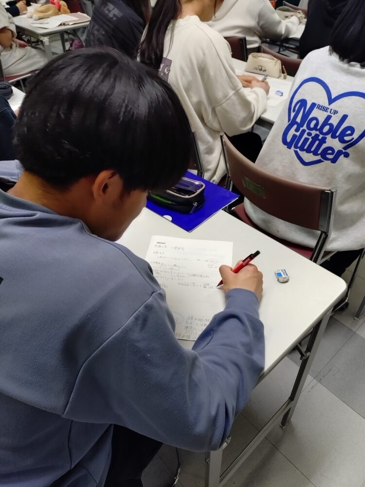 生徒たち、一生懸命にメモを取りながら聞いています。