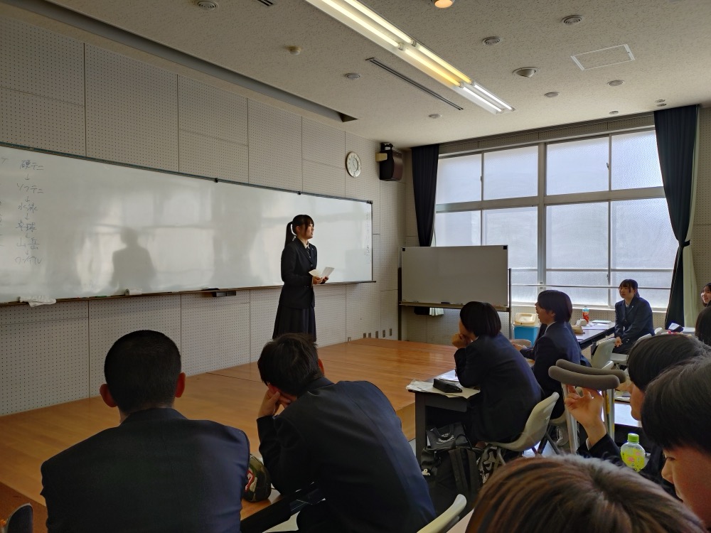 9:00より、運動部・文化部揃っての講義です。講師は、こちらも生徒の指名による先生から。