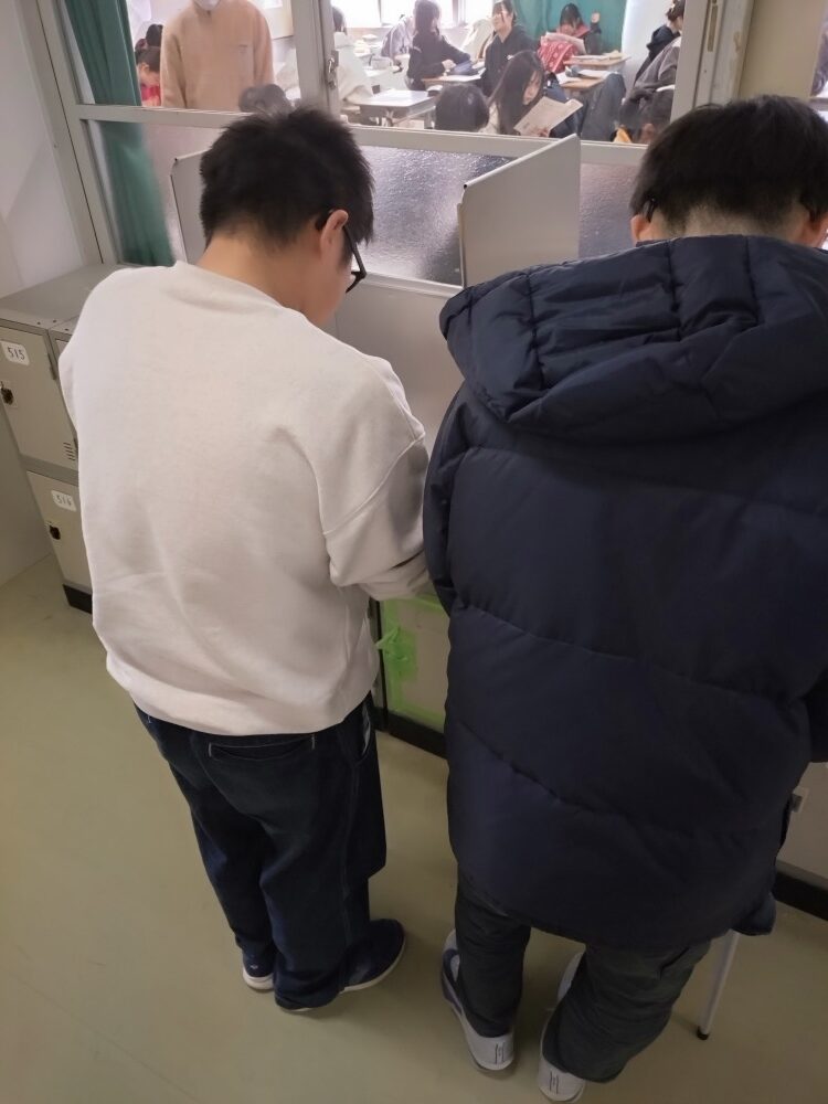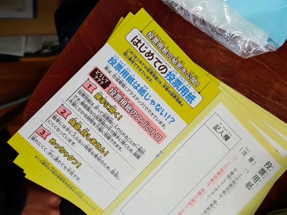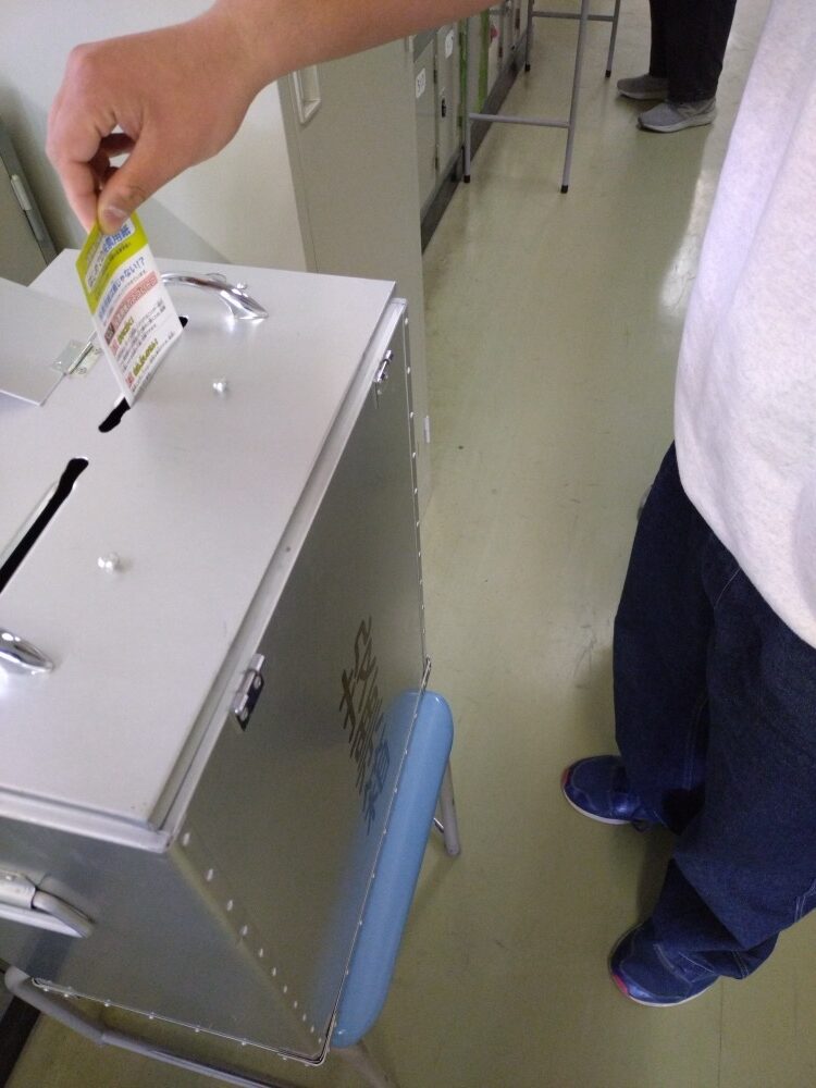 ホームルームでは、選挙管理委員会からお借りした投票台と投票箱を使って、生徒自身が選挙管理委員や投票監理者となり、投票しました。