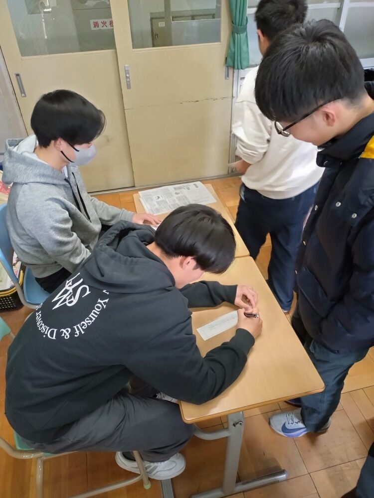 3月5日(木)2年生がホームルームで、模擬投票~参政権を行使する体験~をしました。